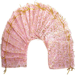 أكياس أورجانزا مربعة 10*15 سم ملونة ومتينة وعالية الجودة ورخيصة للترويج بنمط الزهور والنجوم مع رباط للزينة